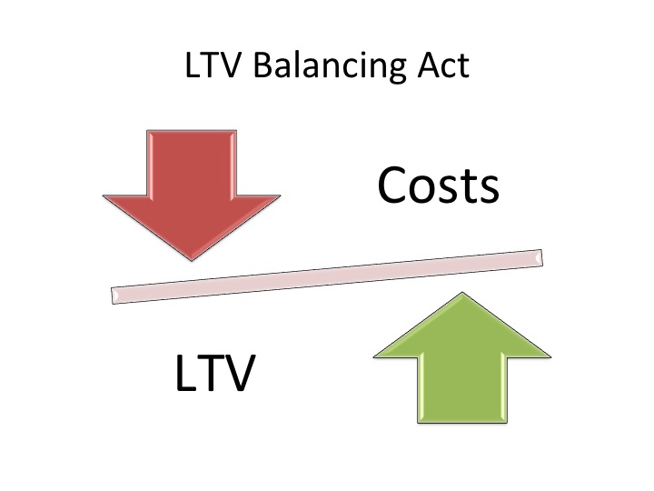 The key to optimize the value of a customer versus their costs is not treating all customers the same. Each customer has a different LTV, which can be estimated from everything nearly all the data you are collecting, including from how you acquired the user, their demographic, their initial behavior, etc. The first step to optimizing your business is to determine your different customer segments (VIPs, heavy spenders, occasional spenders, one time spenders, social whales, browsers, etc.). You then put all of your users (hopefully automate this process) into these segments.