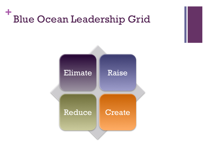 - Replicate the Blue Ocean grid. The best way to improve leadership is to extend the Eliminate-Reduce-Raise-Create grid that has proven successful in creating strategy to improving your company’s leadership.